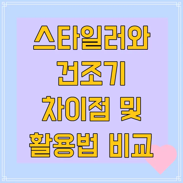 혹시 스타일러랑 건조기, 둘 다 옷 말리는 거 아닌가? 똑같은 기능인가? 하고 생각하시는 분들 계실 거예요. 저도 처음엔 그랬거든요.😅 하지만 알고 보면 스타일러와 건조기는 작동 원리부터 활용법까지 꽤나 다르답니다 . 어떤 옷을 어떻게 관리해야 할지 고민될 때, 스타일러 와 건조기 중 무엇을 선택해야 할지 막막할 때! 이 글을 꼼꼼히 읽어보시면 궁금증이 싹 풀리실 거예요. 😉 자, 그럼 지금부터 스타일러와 건조기의 차이점 을 파헤쳐 볼까요?