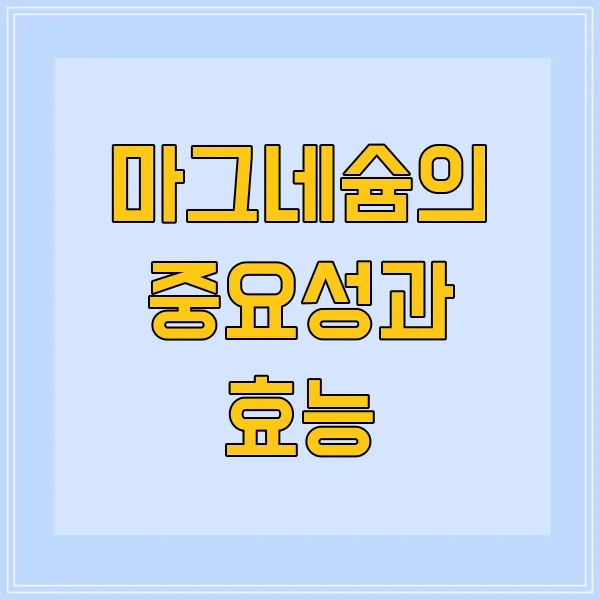 마그네슘, 들어보셨나요? 이 작은 미네랄이 우리 몸에 얼마나 중요한 역할을 하는지 아시나요? 요즘은 마그네슘을 챙겨먹는 분들이 많아졌어요. 하지만, 도대체 언제 먹는 게 좋을까요? 저도 고민했던 부분이에요. 또, 어떻게 식사와 조화롭게 섭취할 수 있을지 궁금하지 않으세요? 오늘은 마그네슘 먹는 시간에 대해 이야기를 나눠보려 해요. 부작용이나 주의할 점도 함께 살펴볼 예정이니, 함께 읽어보시죠!